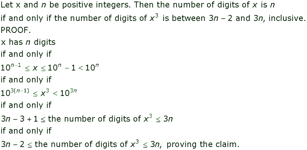 Let us start with a number, say 91125. Since it has five digits and 5 lies between 3(2)-2 and 3(2), 911251/3 has 2 digits, say a1a0, in the integer part, by Proposition 2. That is, (a1a0)3 is the largest cube not exceeding 91125.