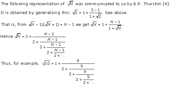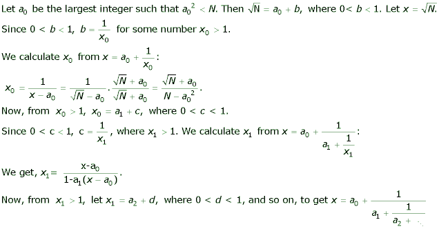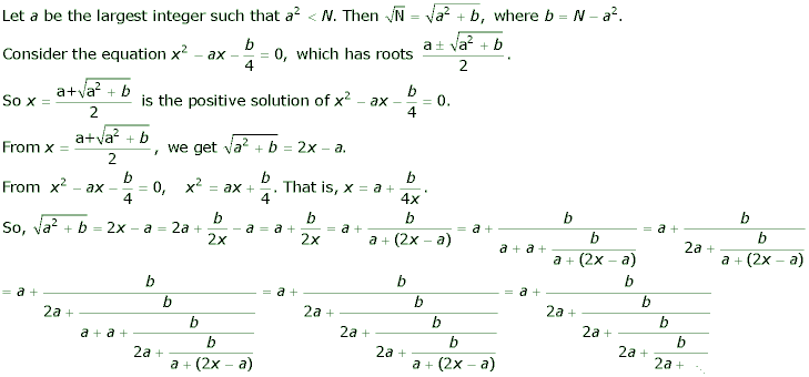 The procedure we used to find the CF representation of √3 can be used also to find the CF for √N, for any positive integer N that is not the square of another.